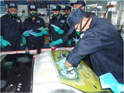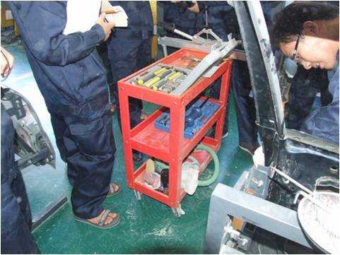 老師們親自實(shí)操鈑金修復(fù)